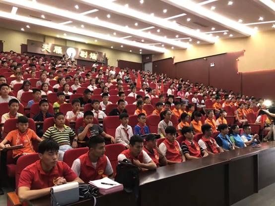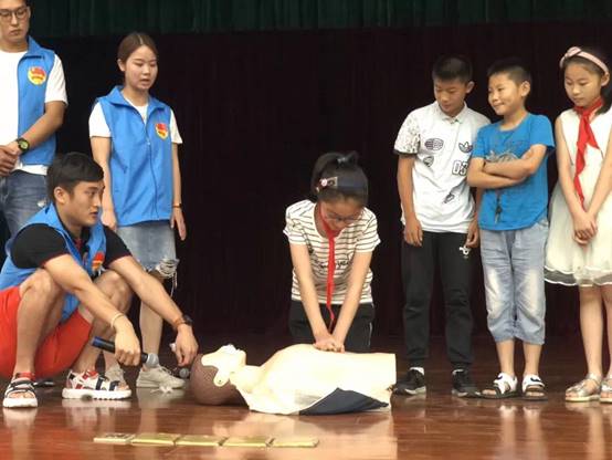 游泳救生员志愿者为五年级260多名学生示范心肺复苏等救护知识。