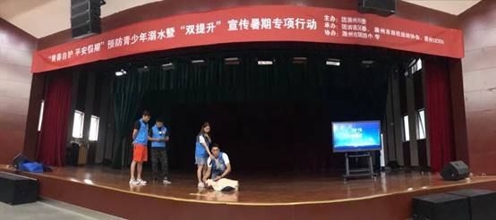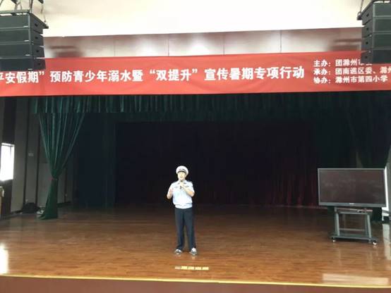 “青春自护•平安假期”预防青少年溺水暨“双提升”宣传暑期专项行动启动仪式 发布日期:2018-6-5 作者:管理员 来源:本站 阅读: 4511 次 6月29日上午,团市委在滁州市第四小学举办“青春自护•平安假期”预防青少年溺水暨“双提升”宣传暑期专项行动启动仪式。
