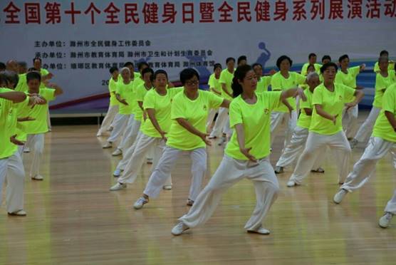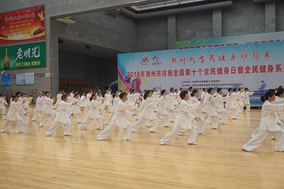 新时代全民健身动起来滁州市大病关爱协会百人展演中华通络操 发布日期:2018-8-9 作者:社会组织联合会 来源:社会组织联合会 阅读: 1590 次 8月8日上午,滁州市第十个全民健身日活动启动仪式在市体育馆隆重举行。市人大常委会副主任朱云霞,市政协副主席陈素云,市教体委书记、局长李中东,市卫计委书记、主任蒋玲,原市政协副主席、市老体协会长何席章,琅琊区副区长谭仁玲,南谯区副区长邵长玲等领导出席开幕式,现场观看了滁州市全民健身成就展和精彩的体育健身节目。 市人大常委会副主任朱云霞在开幕式上发表讲话,要求我市全民围绕“新时代全民健身动起来”的主题,牢固树立“每天锻炼一小时,健康生活一辈子”的理念,开展丰富多彩的全民健身活动,不断掀起全民健身的新热潮。 展演活动中,来自滁州市大病关爱协会、滁州市柔力球协会、滁州市健身气功和太极拳协会、滁州市体育摄影和舞蹈协会、皖东舞蹈学校、滁城各晨晚练点的男女老少健身爱好者们近千人轮番登台,健身者个个神采奕奕,尽情展示新时代滁州全民健身的新风采。其中,滁州市大病关爱协会百人展演的中华通络操,充分展现了大爱协会精神面貌和会员风采,吸引了观众眼球,领导们格外关注,得到现场领导认可。 滁州市大病关爱协会